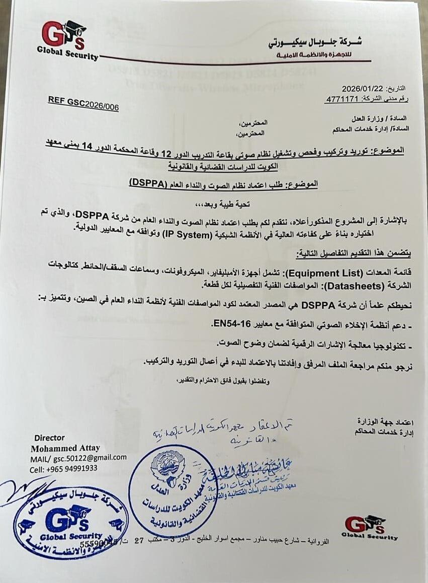 An audio system project was successfully implemented at the Public Authority for Manpower, including the supply of DSPPA microphones and loudspeakers, delivering reliable audio solutions for institutional environments.