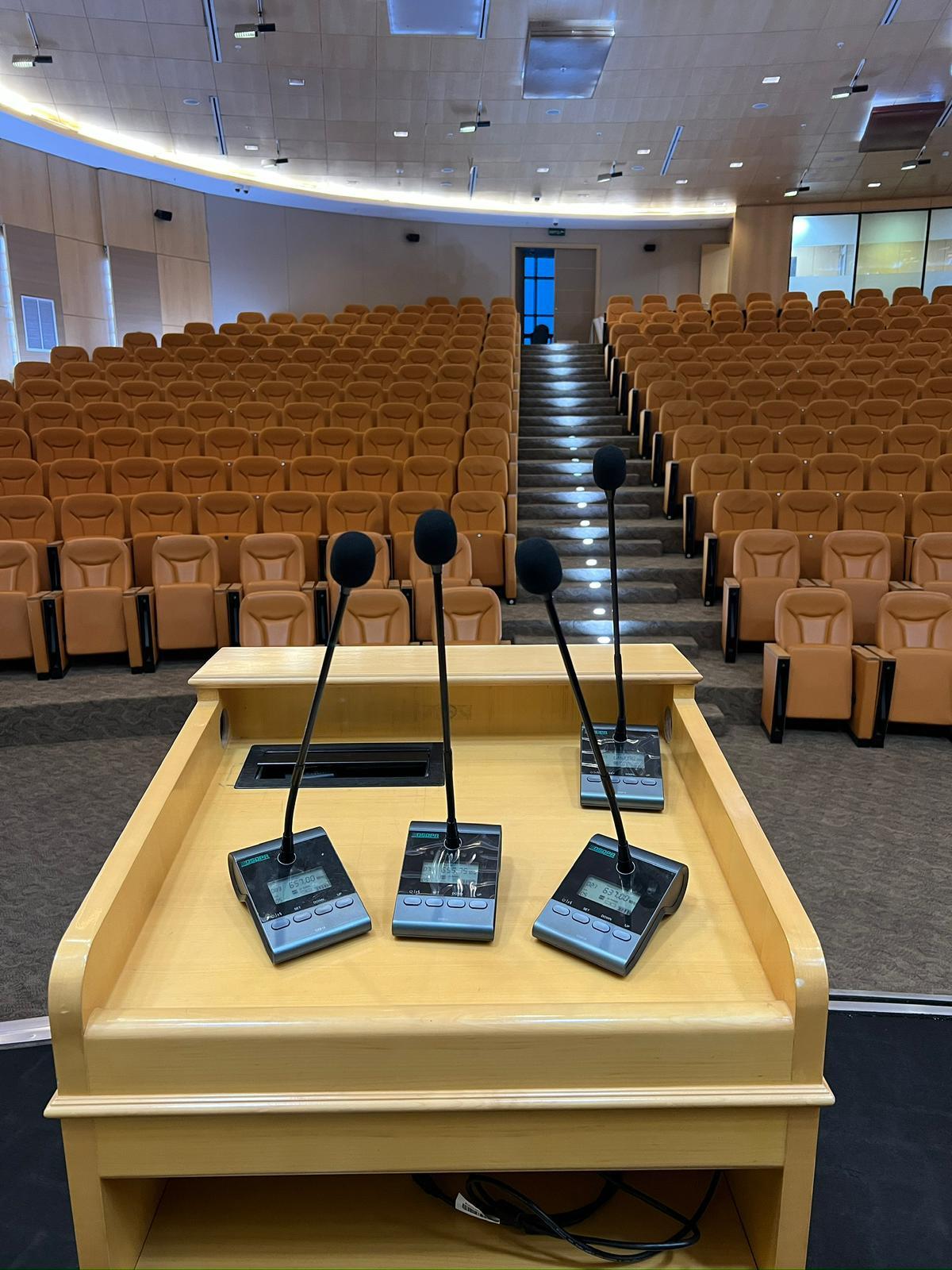 Based on the Ministry of Interior's need for effective and organized conferences, we provided them with the D6201 Smart Wired Conference System. This system is ideal for official meetings that require voting functionalities, supports computer integration for operation, and allows for screen display of conference information. Being a wired system, it ensures stable communication, high-quality audio transmission, and reliable performance during critical events.