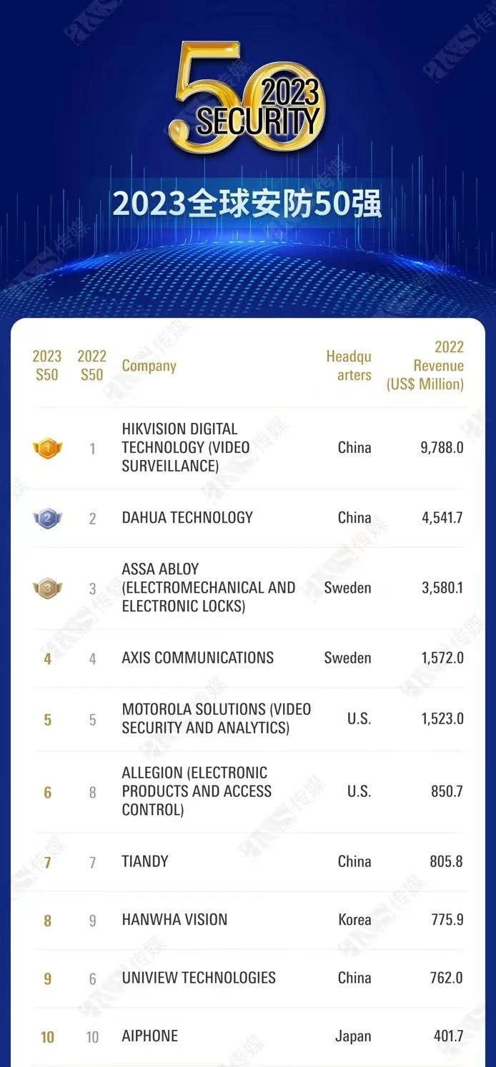 Tiandy Ranked 7th Globally in Security Top 10 – A Global Leader in Smart Surveillance