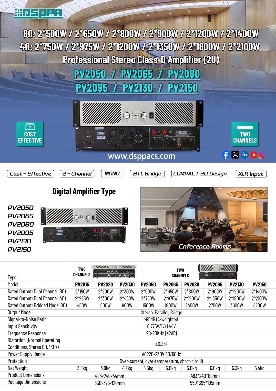 Introducing the PV2050 / PV2065 / PV2080 / PV2095 / PV2130 / PV2150 digital power amplifier series — designed to deliver powerful, stable, and high-quality audio performance for professional applications.