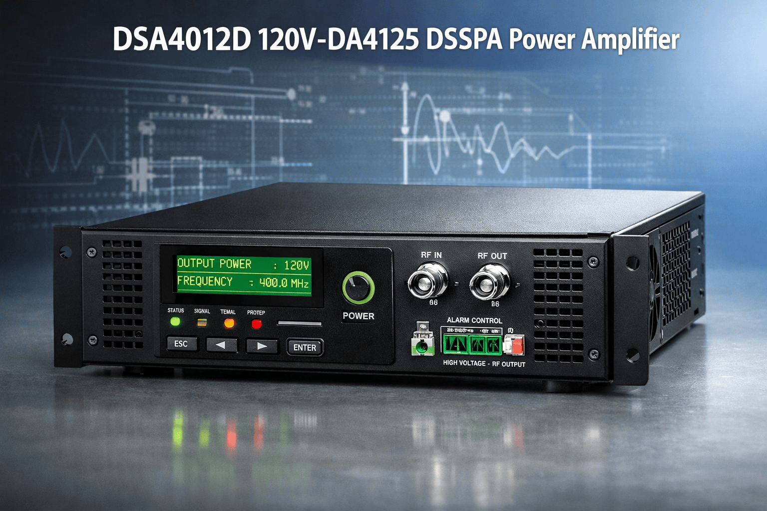 Introducing the DSA4012D (120V-DA4125 DSSPA) — a high-performance solid-state power amplifier designed for industrial and professional applications.